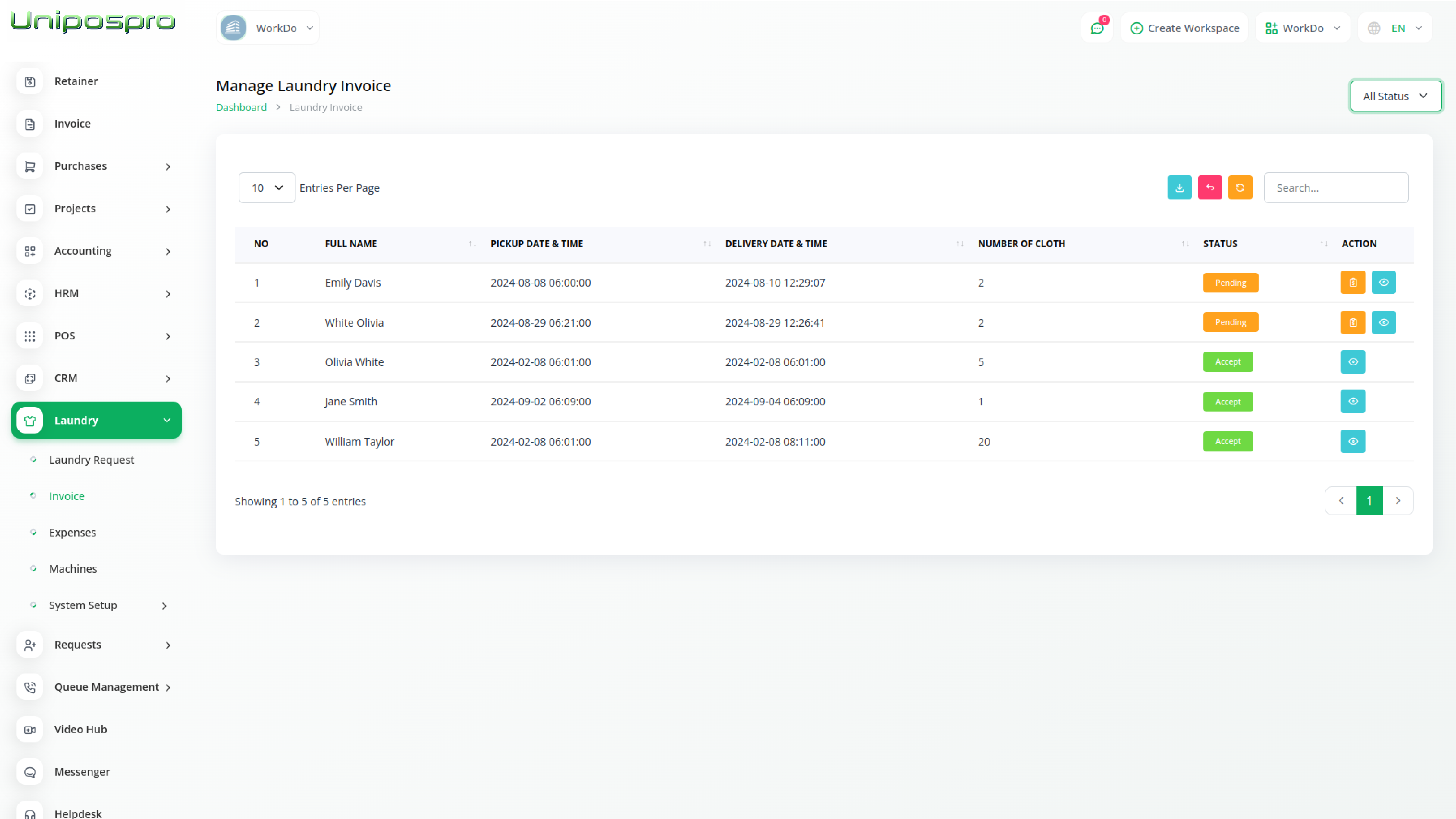 Transforming Laundry Operations: Revolutionize garment care with Laundry Management Integration, providing seamless request handling,and powerful backend tools to set a new standard in the laundry service industry.
