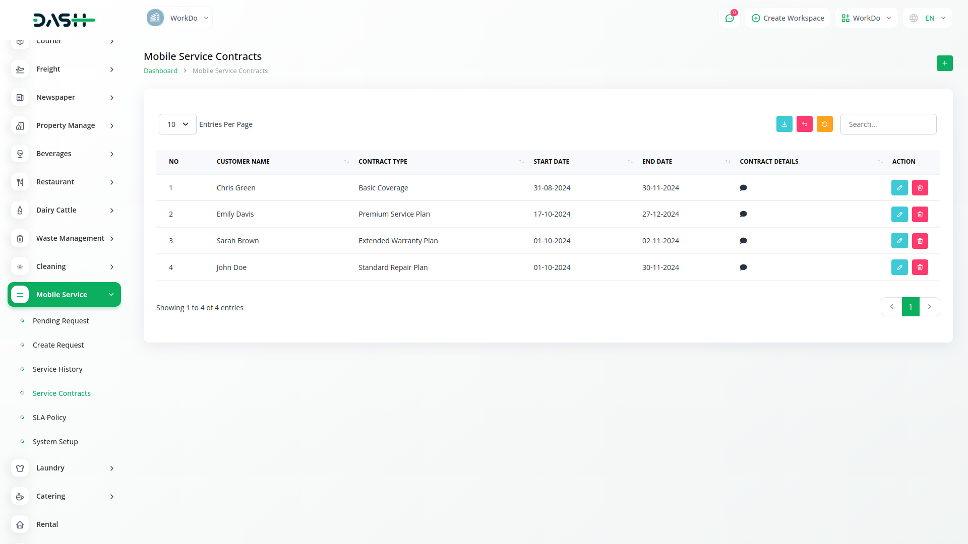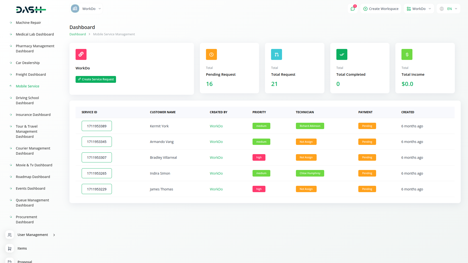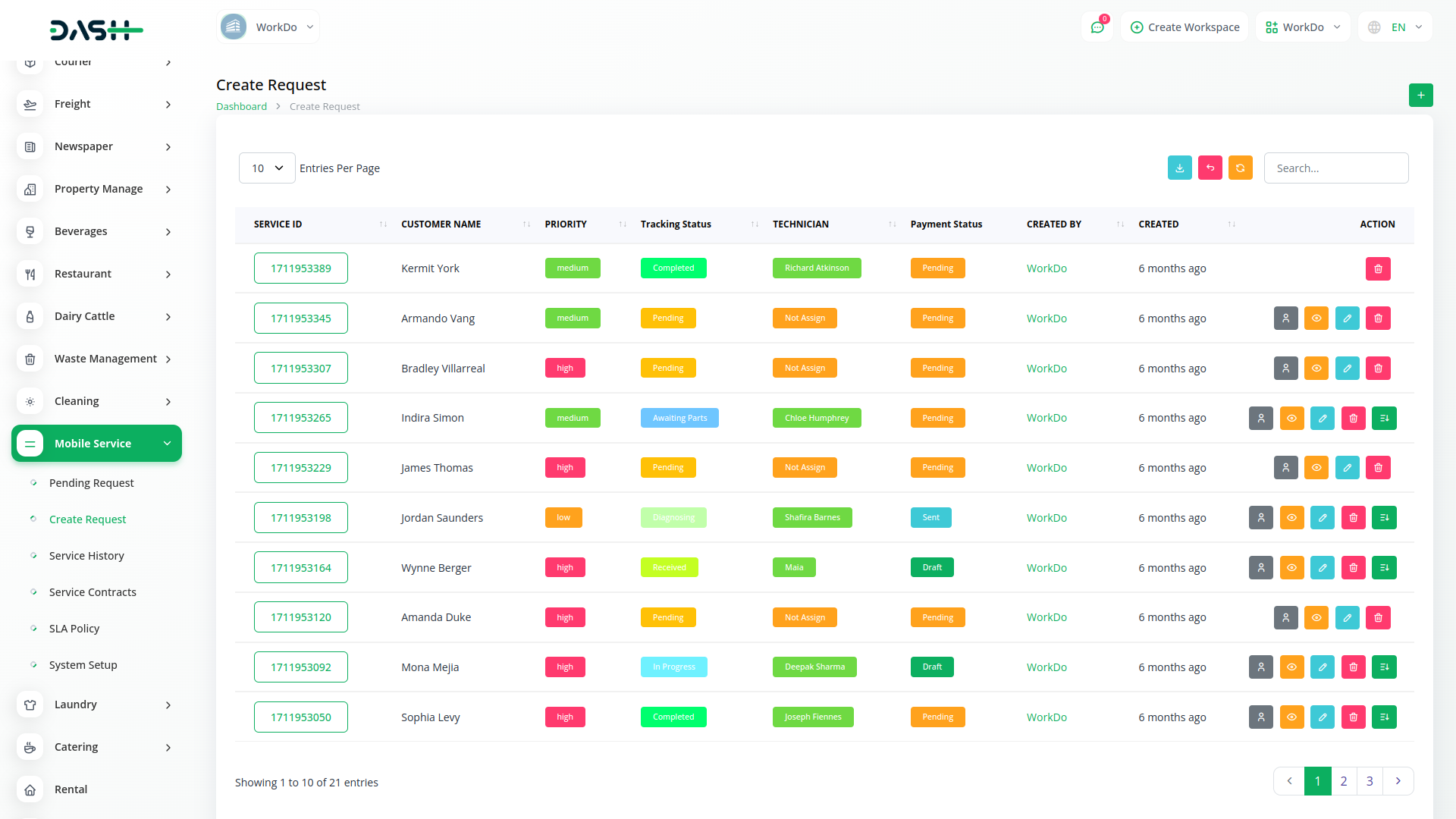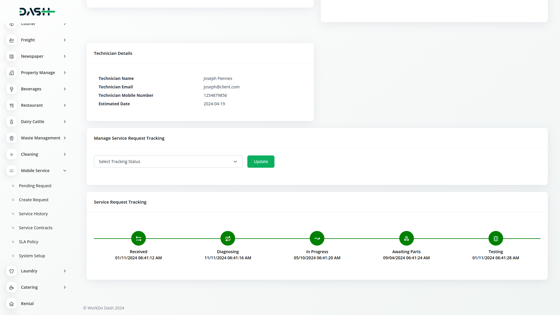 Dash SaaS presents the integration of Mobile Service Management, a solution designed to revolutionize customer service operations. This innovative integration empowers businesses to effortlessly manage customer requests, assign technicians, track mobile parts inventory, and generate bills—all from the convenience of a mobile device.
